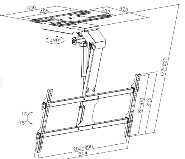 זרוע חשמלית תקרתית לטלוויזיות כולל צידוד